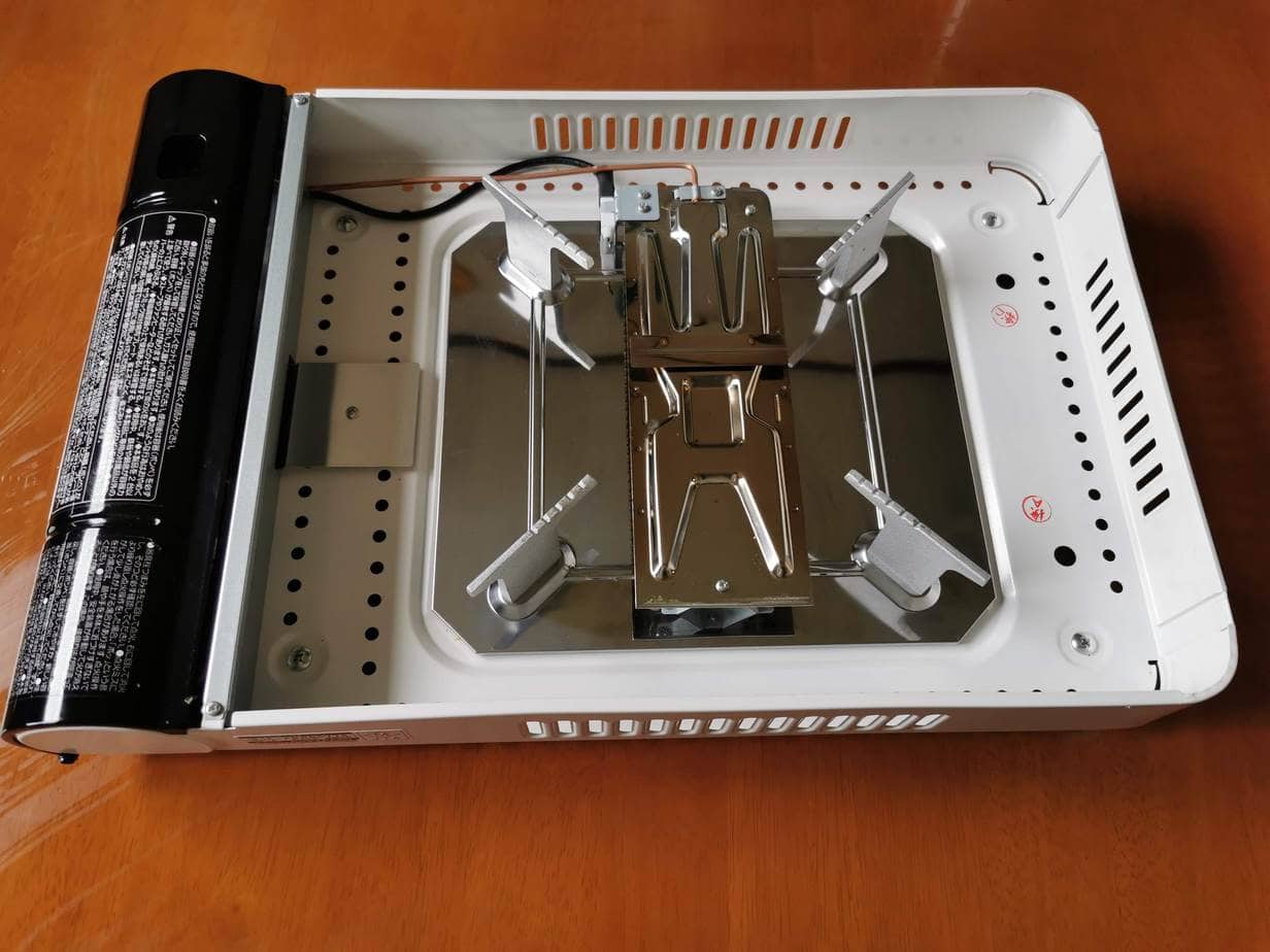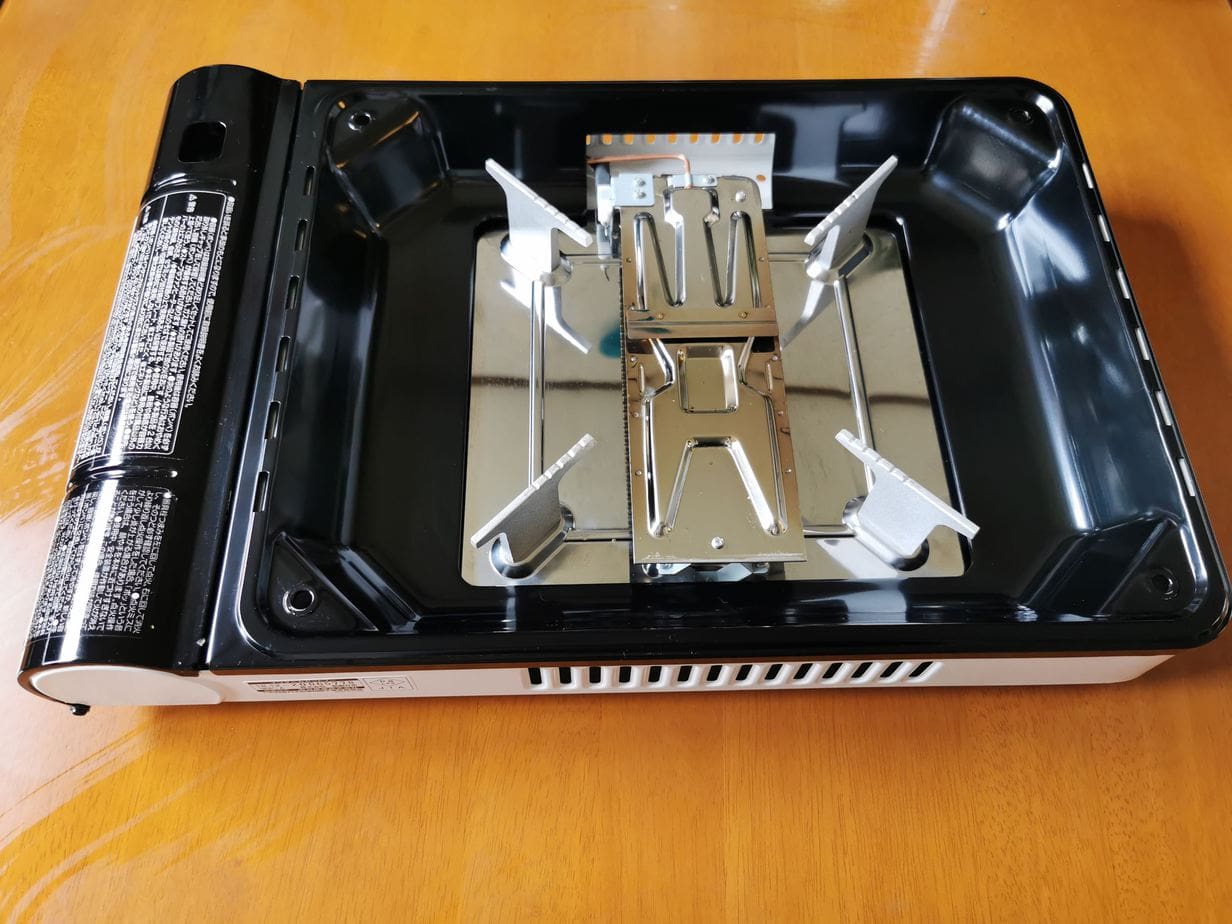 ホットプレートは取り外し式になっており、外すとゴトクがあります。そのためフライパンや鍋(8号程度まで)を置くこともできるので、鍋や別のホットプレートも置けます。